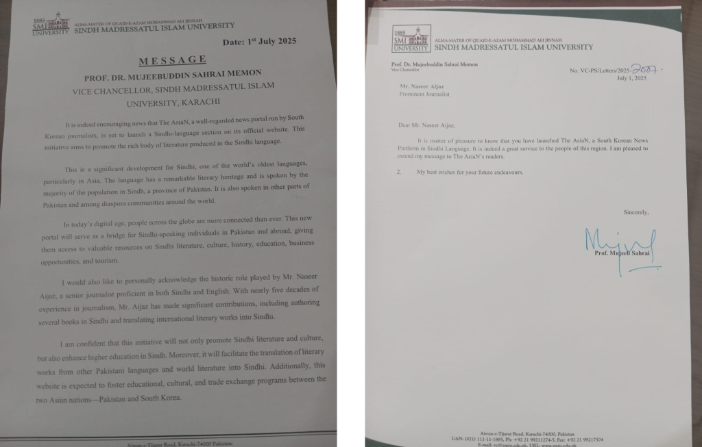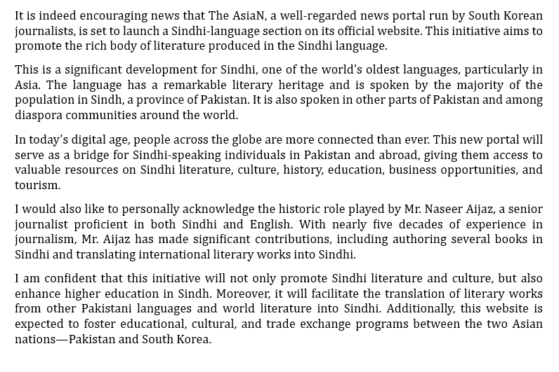 Congratulatory message by Dr. Mujeeb Sahrai Vice Chancellor Sindh Madressatul Islam University,Karachi, Sindh, Pakistan the Launch of the Sindhi Version of The AsiaN