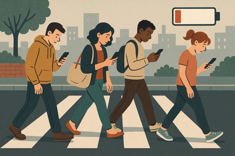 ھانگ ڪانگ جي سب وي ۾ ھڪ عورت اوچتو روڄ پِٽڪو شروع ڪيو ڇو تہ سندس موبائل فون جي چارجنگ ختم ٿي وئي. چين ۾ واٽ ويندي موبائل ۾ اکيون کُتل ھئڻ سبب ھڪ مائي وڃي پاڻيءَ ۾ ڪِري. چين ۾ ھلندي ھلني موبائل فون استعمال ڪرڻ وارن لاءِ الڳ فُٽپاٿون آھن