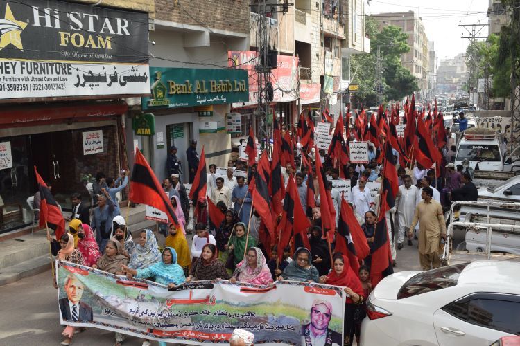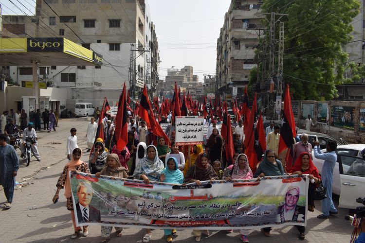 جاگيرداري نظام، ڪارپوريٽ فارمنگ، نون ڊيمن، ڪئنالن ۽ زرعي جنسون ٻاهرين ملڪن مان گهرائڻ خلاف احتجاجي جلوس ۽ ڌرڻو، وڏي تعداد ۾ هاري ۽ هارياڻيون شريڪ.
