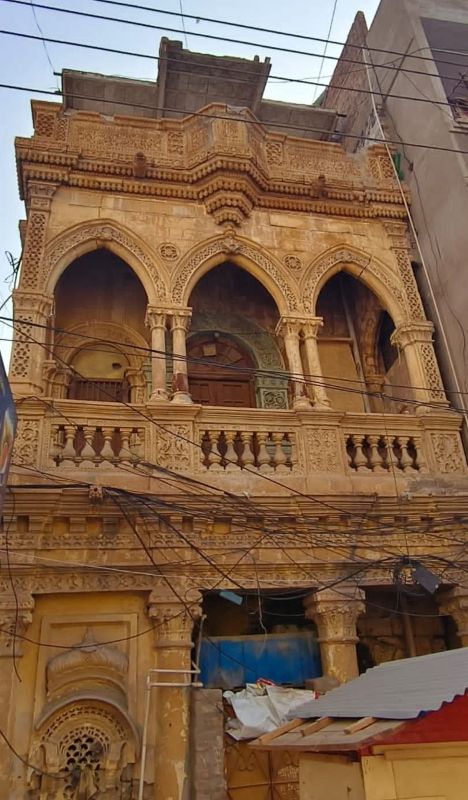 تصوير ۾ نظر ايندڙ ھڪ تاريخي عمارت آھي جيڪا مياڻي روڊ تي آھي جنھن کي ھاڻي پرنس علي روڊ سڏيو ٿو وڃي. ھن روڊ تي ئي سلاوٽ مارواڙي برادريءَ جو پاڙو آباد آھي. ھيءَ عمارت پٿر سان اڏيل آھي ۽ پٿر تي وڏي مھارت سان چٽ ساليءَ جو ڪم ٿيل آھي. وقت ھن عمارت جي سونھن کي ڪجھ گھٽ ڪيو آھي پر جيڪڏھن وري ھن جاء جي ڪجھ ٽھل ٽڪور ڪجي ته اُن جو جوڀن واپس اچي سگھي ٿو .