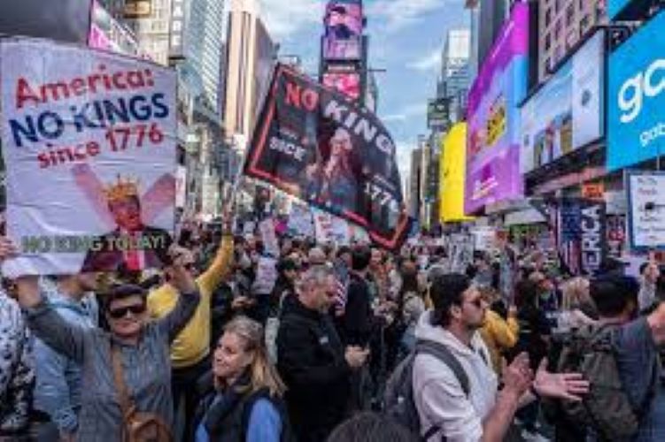 آمريڪا، جيڪو دنيا ۾ جمهوريت، آزادي ۽ قانون جي بالادستيءَ جو علمبردار سڏجي ٿو، اُتي آمريڪي صدر ڊونلڊ ٽرمپ جي پاليسين خلاف تاريخي احتجاج ۾ “نو ڪنگز” جي نعري هيٺ لڳ ڀڳ ستر لک ماڻهو روڊن تي نڪري آيا. 18 آڪٽوبر جي ڏينهن آمريڪا جي مختلف شهرن سميت يورپ ۽ دنيا جي مختلف ملڪن ۾ “نو ڪنگز” نعري هيٺ مظاهرا ڪيا ويا ۽ جلوس ڪڍيا ويا. اهي مظاهرا آمريڪا ۾ ٿيل تاريخ جي سڀ کان وڏي پرامن احتجاجن مان هڪ هئا. انهن تاريخي مظاهرن ۾ لڳ ڀڳ 70 لک کان وڌيڪ ماڻھن شرڪت ڪئي ,جيڪي 27 سئو کان وڌيڪ هنڌن تي گڏ ٿيا ۽ اهي جون ۾ ٿيل مظاهرن کان اٽڪل 20 لک وڌيڪ هئا. اهي ماڻهو اُستاد به هئا ۽ وڪيل بہ، ڪو اڳوڻو فوجي سپاهي هو، ته ڪو برطرف ٿيل سرڪاري ملازم، ٻارڙا، شاگرد ۽ رٽائرڊ بزرگ به ان احتجاج ۾ شامل هئا ۔ملڪ جي وڏن شهرن کان وٺي ننڍن ڳوٺن تائين، ماڻهو جُهنڊن جي صورت ۾ گڏ ٿيا۔ هي احتجاج لاس اينجلس , نيويارڪ ، شڪاگو، واشنگٽن ڊي سي، آسٽن، ٽيڪساس کانسواء دنيا جي ٻين ملڪن ۾ به ٿيو.