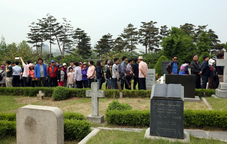 سيئول: هاپجونگ اسٽيشن ويجھو Yanghwajin پرڏيھي مشنريز جو قبرستان سيئول جي مرڪزي علائقي ۾ واقع آهي جيڪو ڪوريائي پروٽيسٽنٽزم جي تعمير لاءِ قربانين جي شاھدي ڏئي ٿو.