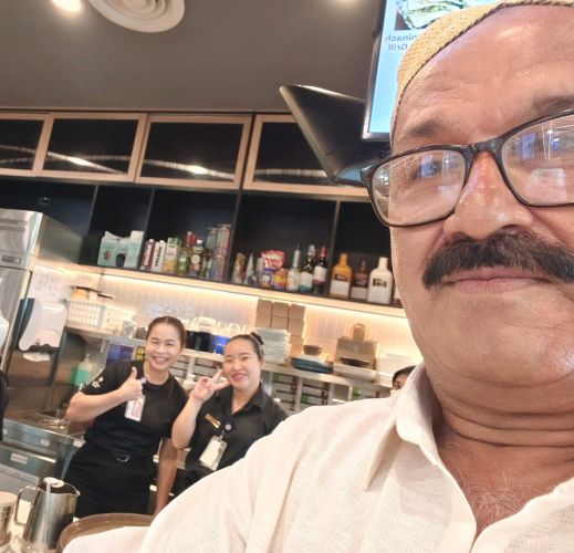 فلائيٽ جي اوسيئڙي ۾ ويٺا هئاسين ته سمير ۽ ماڻھس کي چانھن جي طلب ٿي. ماني ته ٿائي ايئرويز ڍؤ تي کارائي هئي، باقي هتي چانھن پيئڻ جو بندوبست پاڻ ڪرڻو هو، تنھنڪري ڪُرسيءَ تان اُٿي، سامهون فوڊ شاپ تي ويس، جِتي ڪُرسين تي ڪيترائي فارينرس ويٺا ناشتو ڪري رَهيا هئا. ڪائونٽر تي ٽي ٿائي جوانڙيون، جن کي ڪارا ڪپڙا پاتل هئا، بيٺيون گراهڪن کي ڊيل ڪري رَهيون هيون. مون وڌي وڃي کين سَلام ڪيو ۽ چانھه بابت پُڇيم. هنن چيو ته وٽن آمريڪن چانھه آهي، هڪ ڪوپ جا 120 ٿائي ڀات ٿيندا، يعني لڳ ڀڳ ٻارنھن سؤ پاڪستاني روپيا. دل ۾ چيم: ”ڇوريون! اوهان ته صفا ڦريو پيون.“ پر سَندن ڪاروباري مُرڪ پھرئين ئي نظر ۾ مون کي موهي وڌو هو.