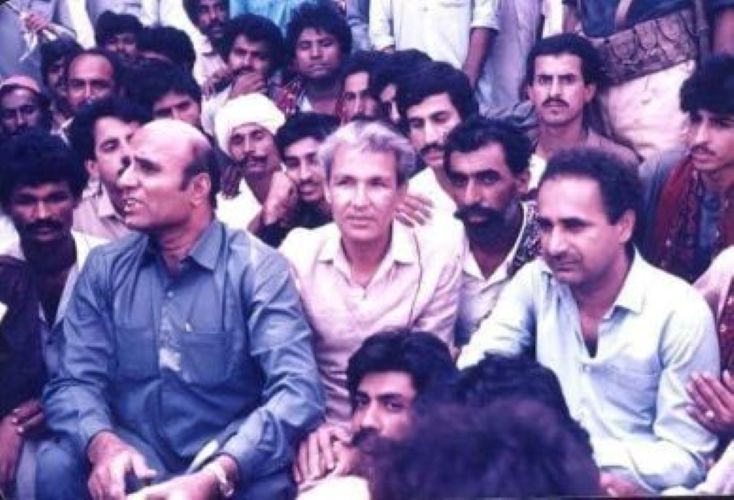 شھيد فاضل راھو (کاٻي) مرحوم رسول بخش پليجي ۽ ٻين ساٿين سان گڏ