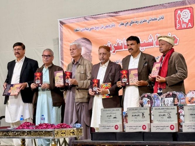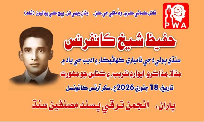 انجمن ترقي پسند مصنفين سنڌ ١٨ جنوري ٢٠٢٦ تي آرٽس ڪائونسل سکر ۾ سنڌ جي ناليواري ڪھاڻيڪار حفيظ شيخ جي ياد ۾ ھڪ ڏينھن واري سالياني ڪانفرنس ڪپٺائي۔