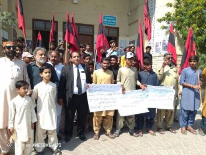 عمر ڪوٽ ۾ پوليس تشدد، پوليس جي سرپرستيءَ ۾ هلندڙ منشيات ۽ ڌاڙيل راڄ خلاف عوامي تحريڪ طرفان جمعي ڏينھن لاڙڪاڻي پريس ڪلب اڳيان احتجاجي مظاهرو ڪيو ويو.