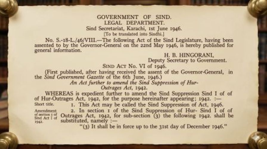 جيئن هتي 1 جون 1946 جي نوٽيفيڪيشن ۾ لکيل آهي. پوءِ اها ساڳي نوٽيفيڪيشن سنڌيءَ ۾ ترجمو ڪري، ڇپائي جاري ڪئي ويندي هئي.