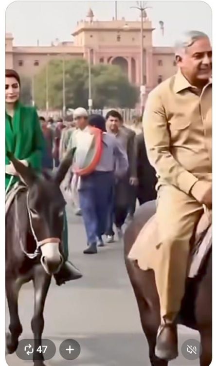 هڪ ٻي وائرل ٿيندڙ وڊيو (Reel) ۾ حڪومتي اڳواڻن، بشمول وزيراعظم ۽ سندس ڪابينا کي گڏهن تي سوار ڏيکاريو ويو آهي، جيڪو ملڪي معيشت کي مستحڪم ڪرڻ ۾ سندن ناڪامي تي هڪ سخت طنزيه تبصرو آهي.