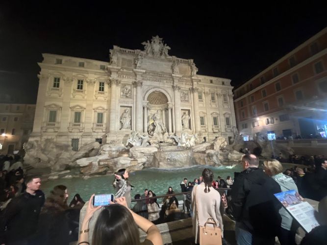 ڪولوسيئم مان اسان بس ذريعي روم جي مشهور ٽريوي فاؤنٽين تي اچي پهتاسين. بسن ۾ ڪا گهڻي پيهه ڪانه هئي پر ٽريوي فاؤنٽين جي چوڌاري وڏي رش هئي. هر عمر جا ماڻهو هن خوبصورت جڳهه مان لطف اندوز ٿي رهيا هئا.