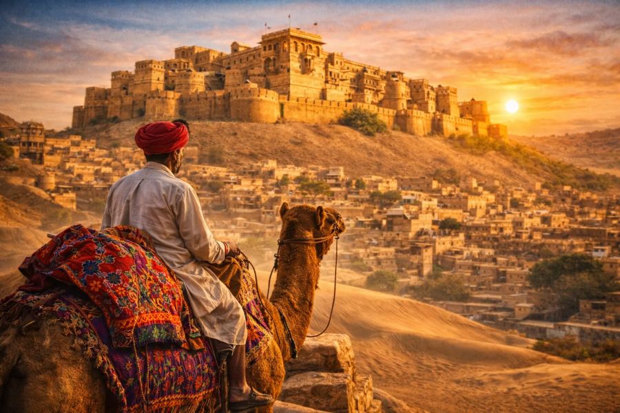 جيسلمير، جنهن کي پنهنجي پيلي پٿر جي خوبصورت عمارتن ۽ قلعي جي ڪري “سونهري شهر” (Golden City) چيو ويندو آهي، هندستان جي رياست راجسٿان جي هڪ قديم ۽ تاريخي شهر طور سڃاتو وڃي ٿو. هي شهر نه صرف پنهنجي جادوئي فنِ تعمير، پر پنهنجي بيهڪ ۽ نالي جي پويان لڪيل دلچسپ تاريخ جي ڪري به عالمي شهرت رکي ٿو.