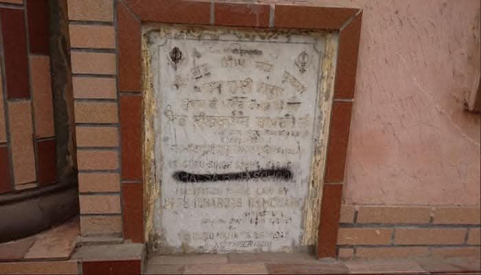 “This stone was laid by Seth Ishwardas Ramchand, former president of Sri Guru Singh Sabha, Karachi, on Sri Guru Nanak’s birthday: November 16, 1930. The school was the property of Sri Guru Singh Sabha functioning under the SGPC.”